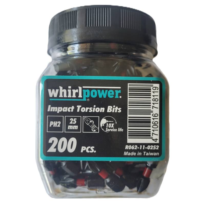 Whirlpower Bit udarowy Impact PH (PH2 x 25 mm, 200 szt.) to profesjonalny zestaw bity udarowych zaprojektowany do pracy z wkrętarkami udarowymi — gwarancja wysokiej jakości i trwałości od renomowanej marki Whirlpower. Wykonane ze stali S2, bity oferują moment obrotowy >40% standardów DIN i dzięki ponad 7-krotnej trwałości przewyższają standardowe bity; zapewniają precyzję osadzenia w łbach PH2, wysoką odporność na pękanie oraz znacznie wyższą wytrzymałość na zrywanie. Ten pakiet 200 szt. sprawdza się w montażu konstrukcji, zabudowie i pracach wykończeniowych — bity impact PH minimalizują naprężenia podczas wkręcania i zapewniają niezawodną wydajność w ekstremalnych warunkach, co czyni je optymalnym wyborem dla profesjonalistów i wymagających majsterkowiczów.